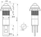 Voltage: 24V Colour: yellow Panel cut-out: 14mm Fitted with resistor Supplied with nut and gasket 6.3mm quick connect terminals Dimensions: 49.2 x 16mm (length x diameter)